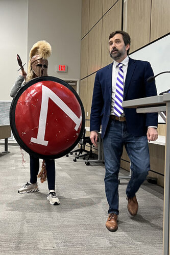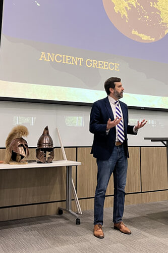 For students, Yates’s influence often extends beyond the classroom. Known for an office filled with replica weapons and armor from the ancient and medieval world, he regularly incorporates hands-on learning into his courses, including battle reenactments that help students better understand ancient warfare, strategy and historical perspective.